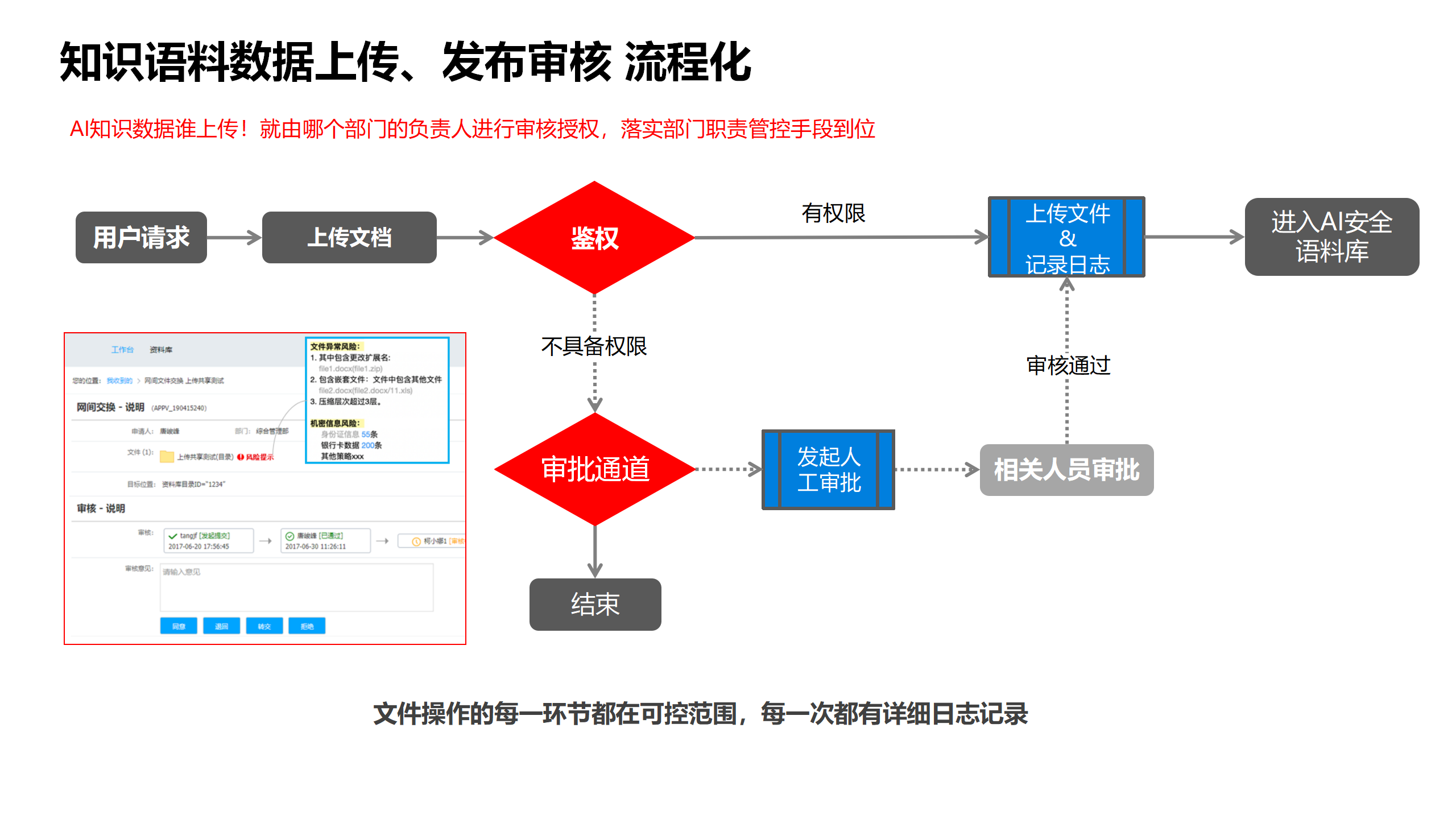 01实现 业务口人员审核 和 数据管理口人合规审核机制,真正实现业务和数据管理口的融合机制,增强AI知识库的“可落地”能力。